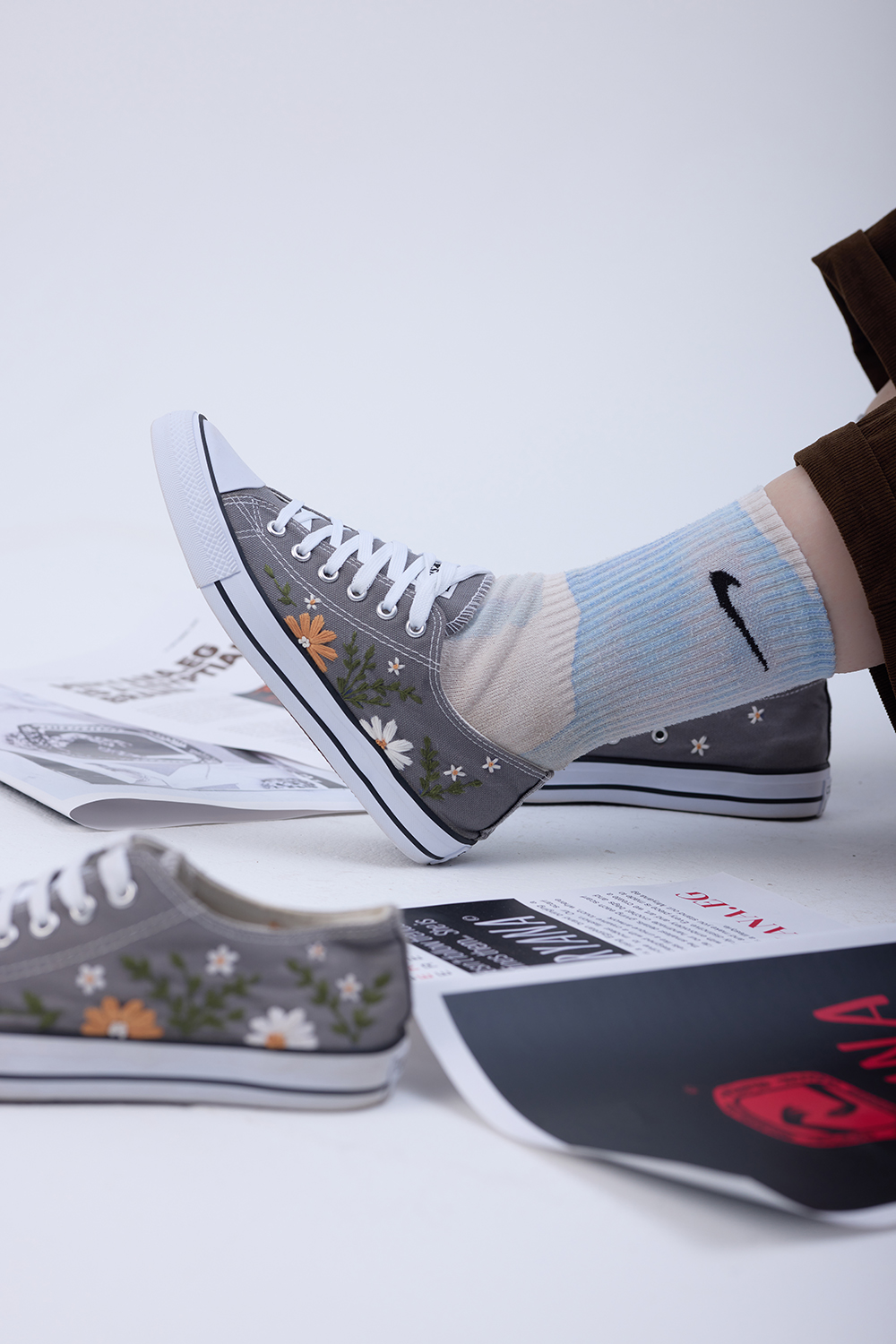 we design pieces that speak for you. Hand-painted sneakers, artistic hijabs, and crochet bags — each product reflects individuality and timeless elegance.